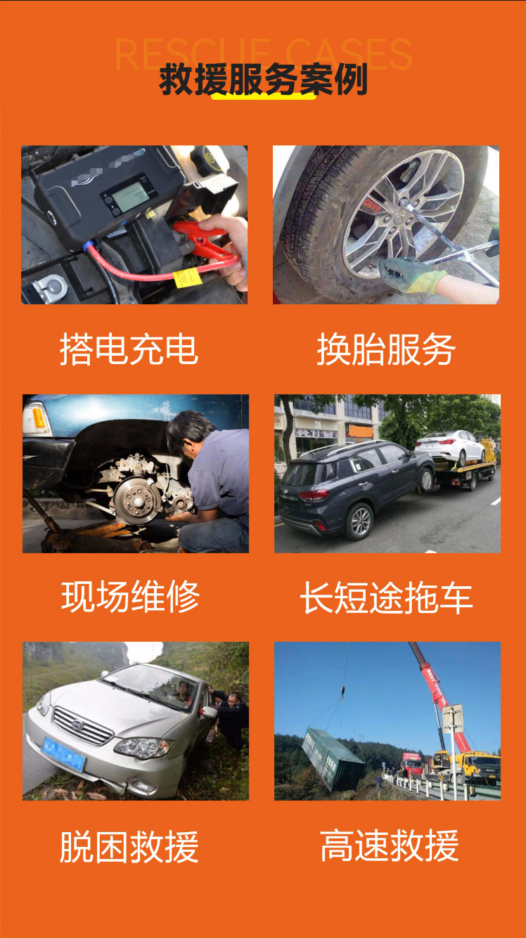 1. 车辆故障拖车:针对因发动机故障、电路问题或机械故障导致无法启动的车辆,提供现场拖车服务。